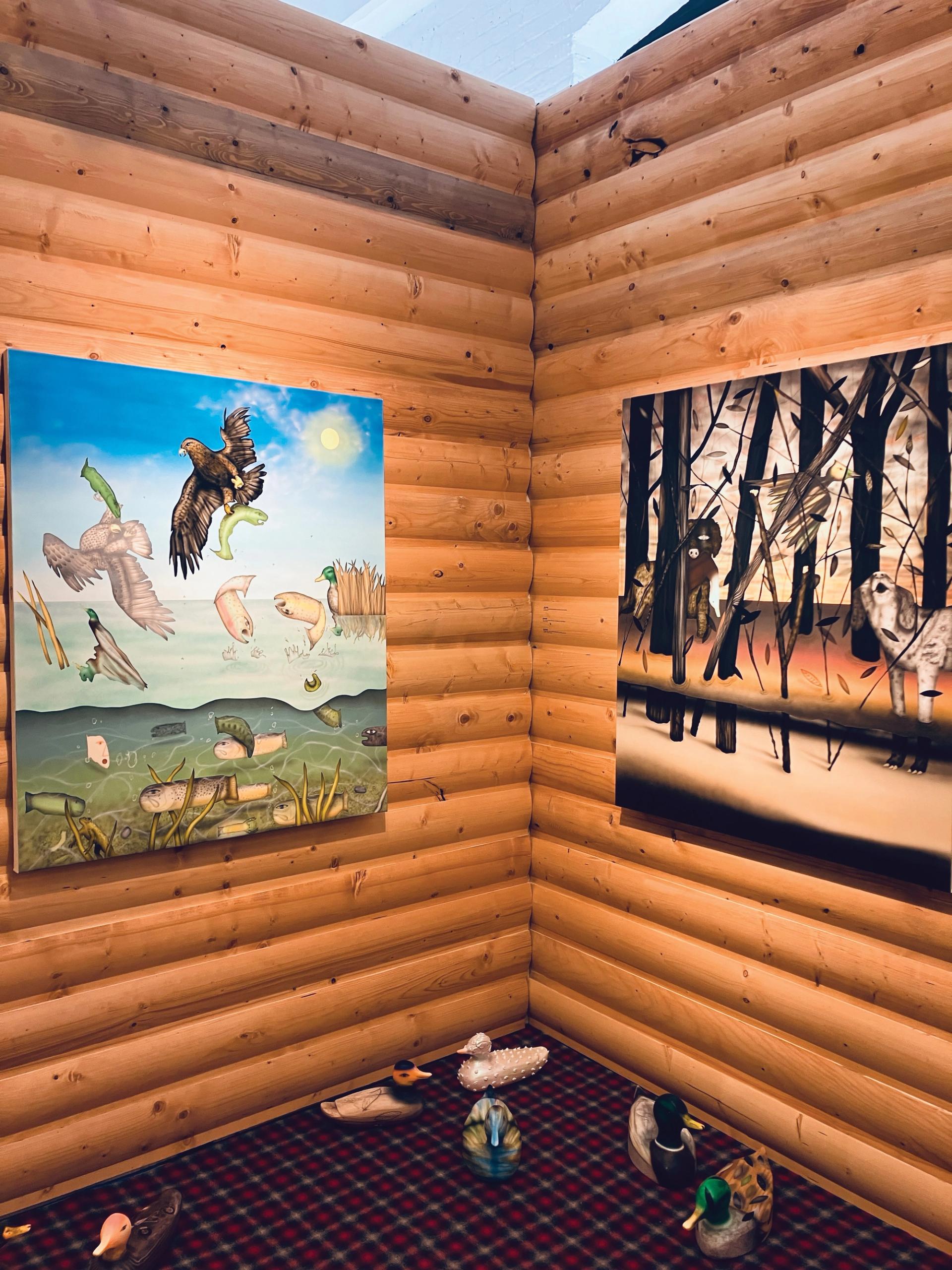 For these searching for much less social interplay, a extra hidden treasure is tucked away on the stand of The Gap gallery. There, in a comfy, log cabin-like backroom, are a sequence of acrylic airbrushed looking scenes by the Nebraska-born, Oregon-based artist Matt Belk (priced at $10,000 every), with a captivating flock of painted decoy geese (priced at $3,000 every) congregating within the corners.