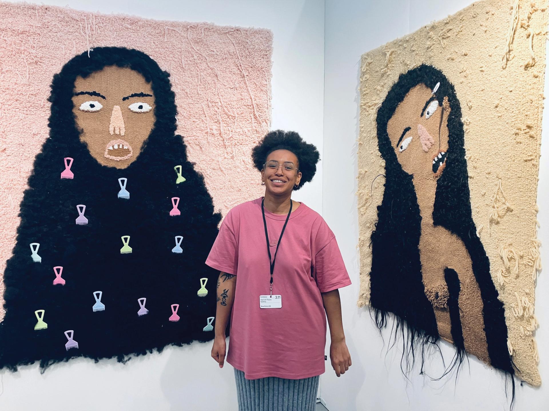 Artist Anya Paintsil together with her works at Nada New York Picture: Helen Stoilas