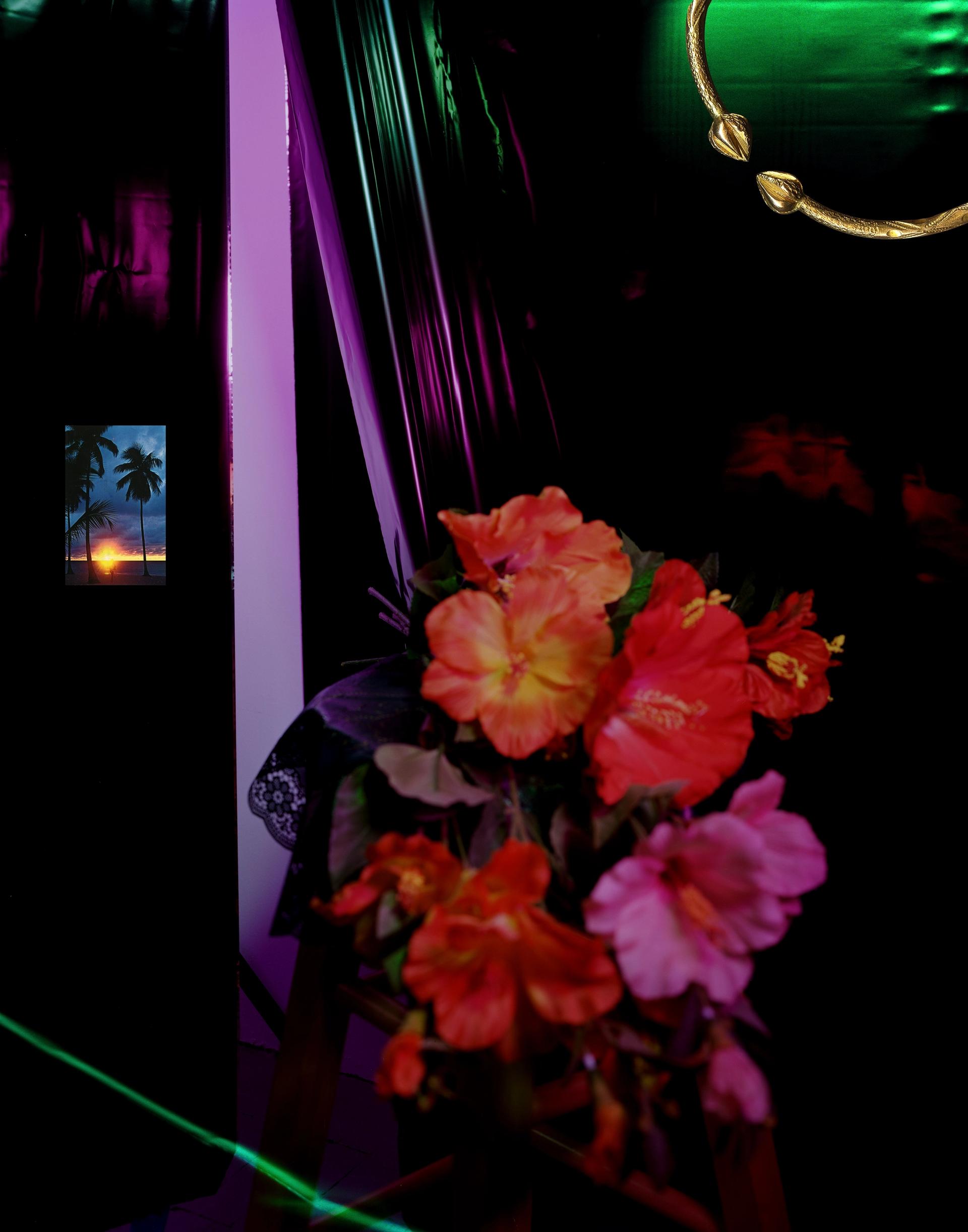Of specific observe is Caribbean Desires, by Samantha Field. The collection mediates on Field’s id with an unmoored factor; based mostly within the US, raised in Jamaica, with Indian and African heritage, she considers her residence to be the worldwide diaspora. Her {photograph}, then, considers the each day objects onto which we connect cultural foreign money; crops and greens, indigenous to her ancestral residence within the Caribbean however thought-about alien within the US, are grown below synthetic lights earlier than being photographed with a lurid saturation. The plastic stickers connected to such commodified produce are pasted on high, interspersed with archive household portraits. These are packed, multivalent and sophisticated photos, plentiful with which means and energy.