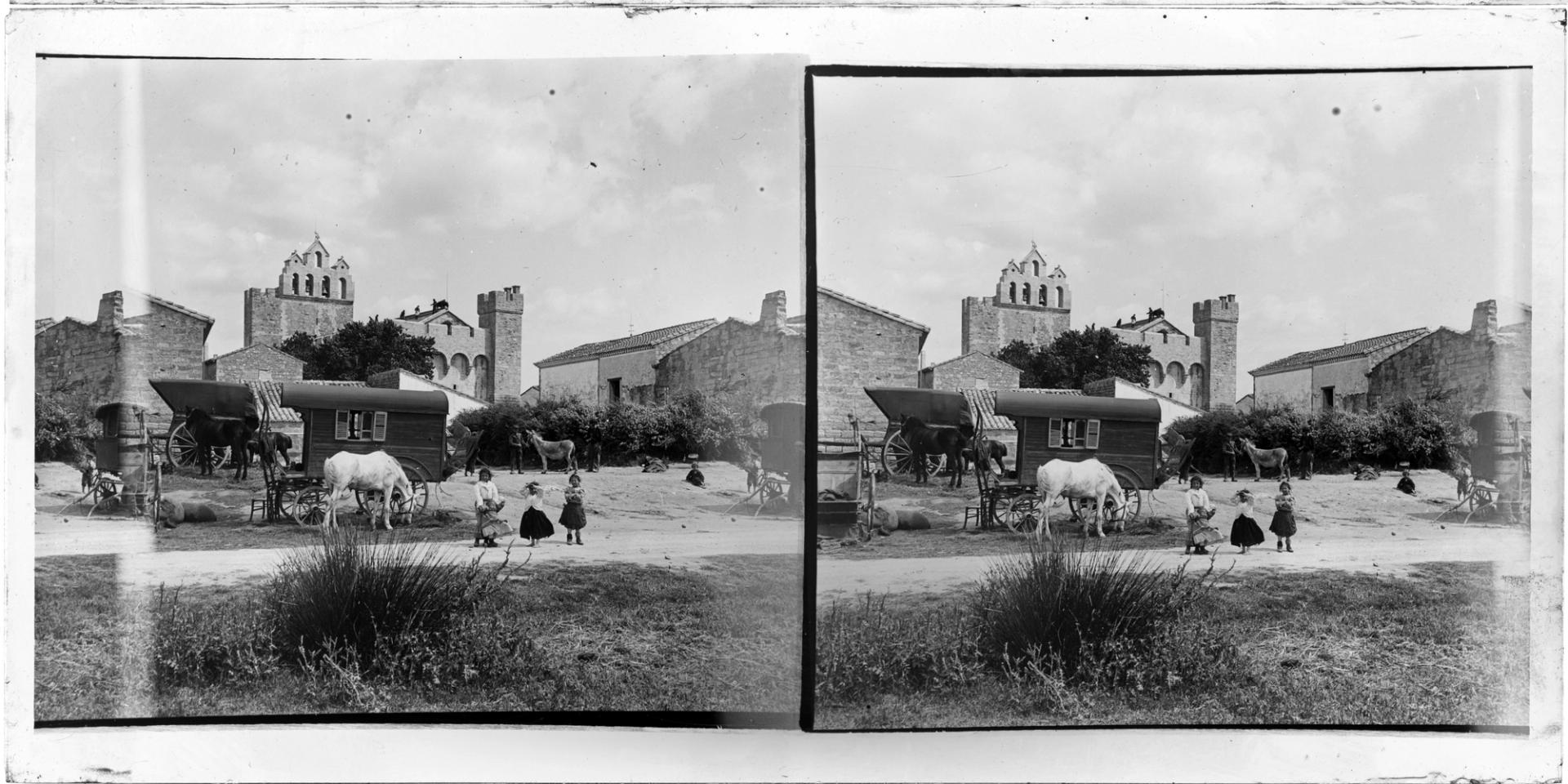 Gaston Bouzanquet. View of the church and caravans, Saintes-Maries-de-la-Mer, 1911. From the exhibition Gentle of Saints © the Musée de la Camargue