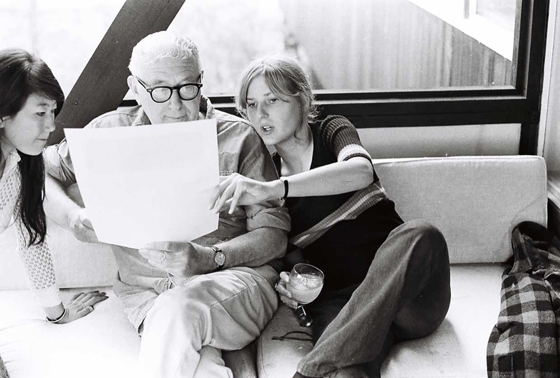 Breuer together with his daughter, Cesca, and a household buddy on the porch of the home