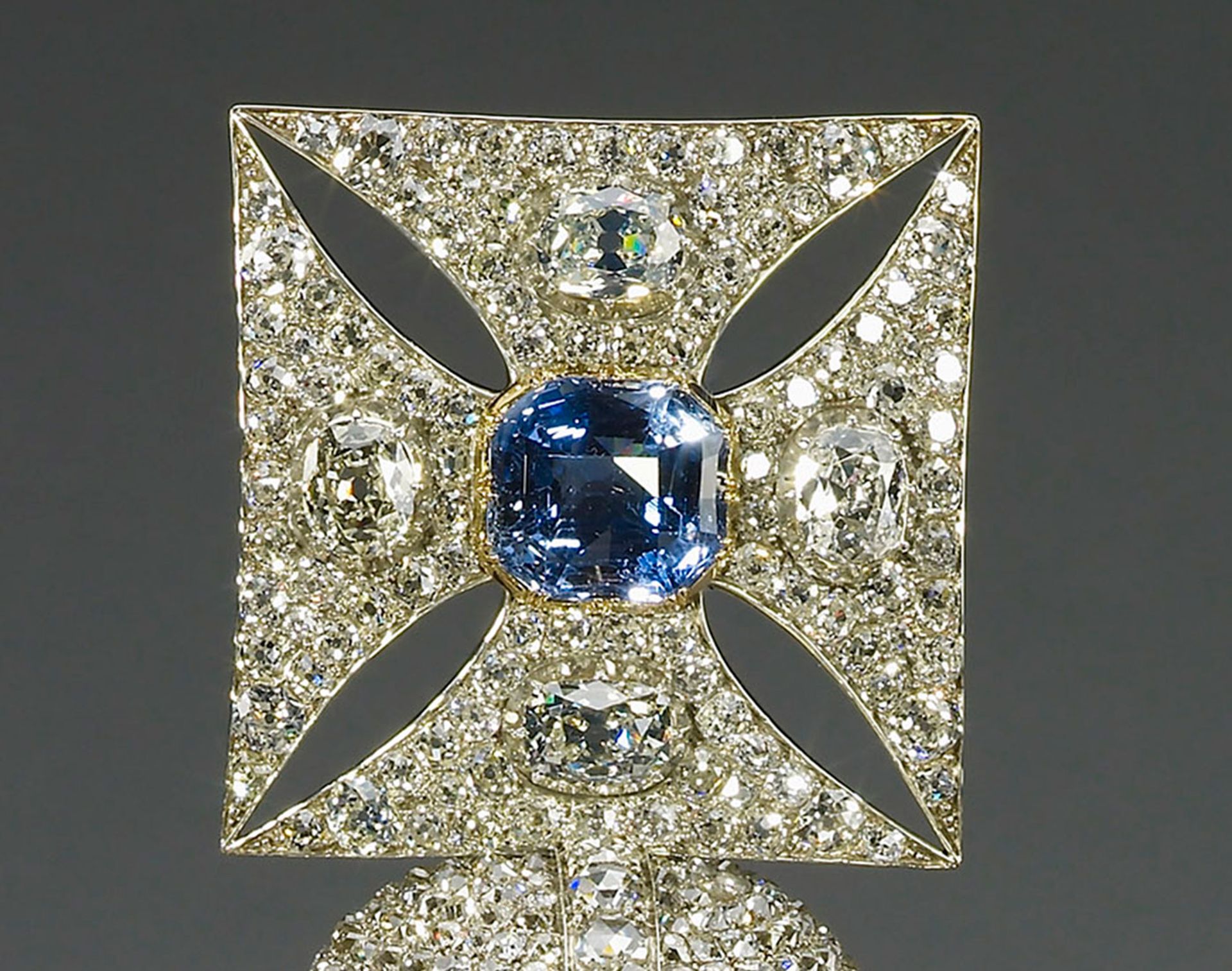 The sapphire from the tomb of St Edward the Confessor is about within the cross of the Imperial State Crown. Initially a cabochon, it was faceted within the reign of Charles II Royal Assortment Belief / © His Majesty King Charles III 2023