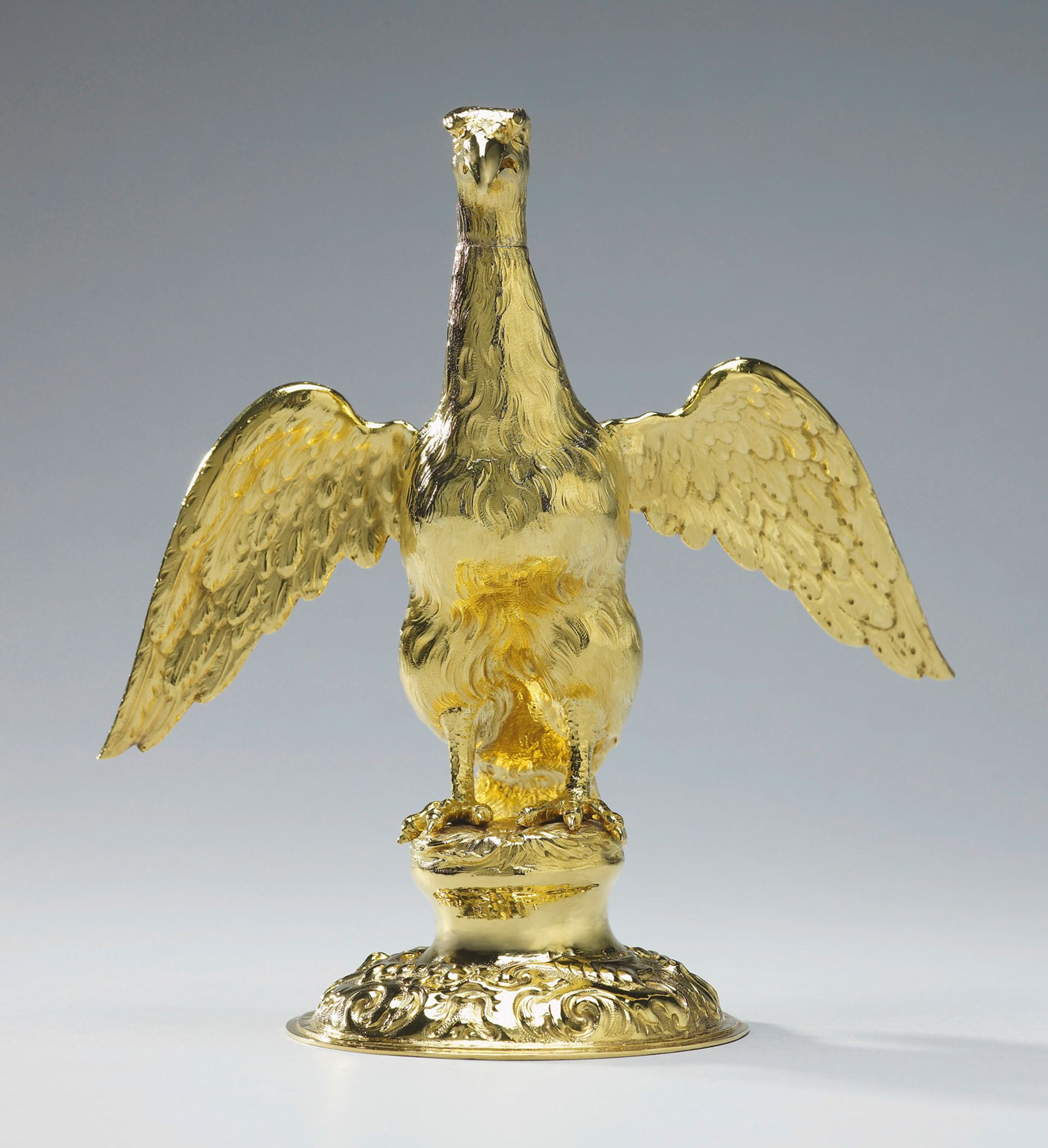 The ampulla, 1661, within the type of a gold eagle, which holds the anointing oils for the coronation Royal Assortment Belief / © His Majesty King Charles III 2023