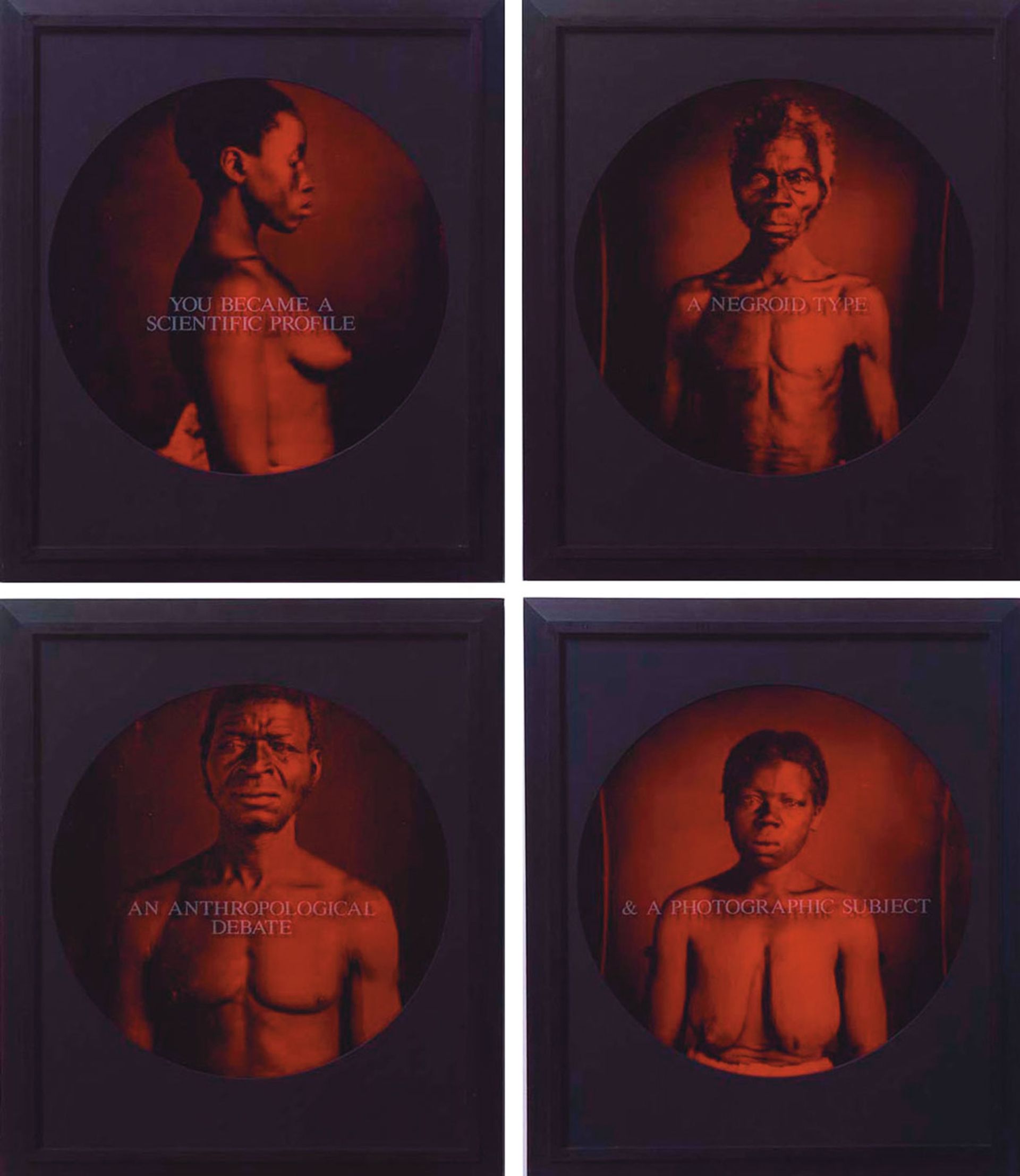 One other collection which was additionally denied a nuanced studying is From Right here I Noticed What Occurred and I Cried (1995-96) during which you rephotographed 33 typically harrowing Nineteenth- and Twentieth-century pictures of Africans and enslaved African People and introduced them in a round lens-like format beneath glass sandblasted with texts you had written.