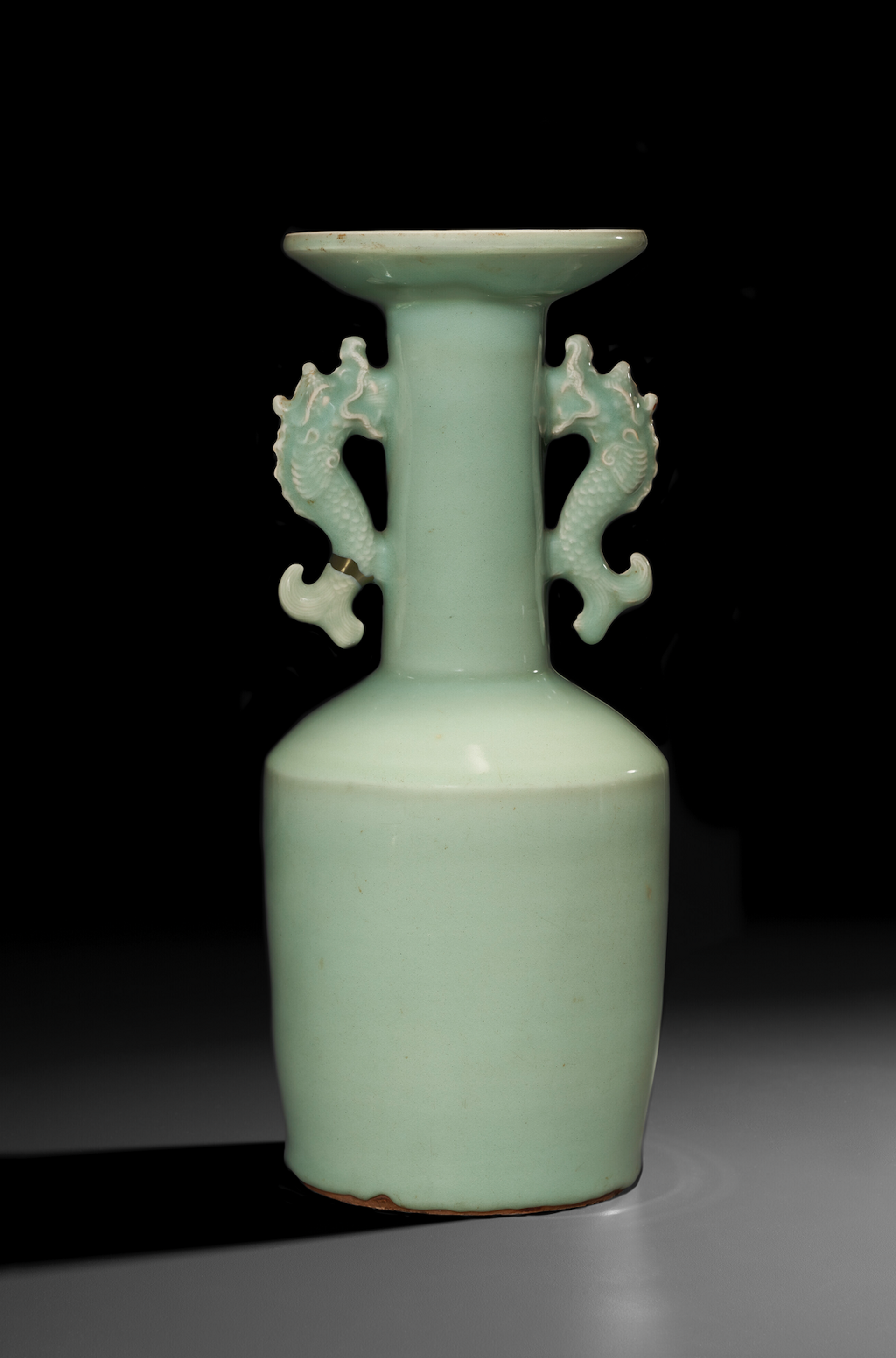 This huge vase from Mineo Hata’s assortment is estimated to promote for between $1m and $2m. The neck encompasses a pair of handles formed like dragon-fish Courtesy Christie’s